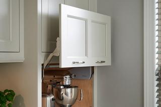 Easy to reach, "hidden" spot to stash common countertop clutter such as blenders, toasters, and more...